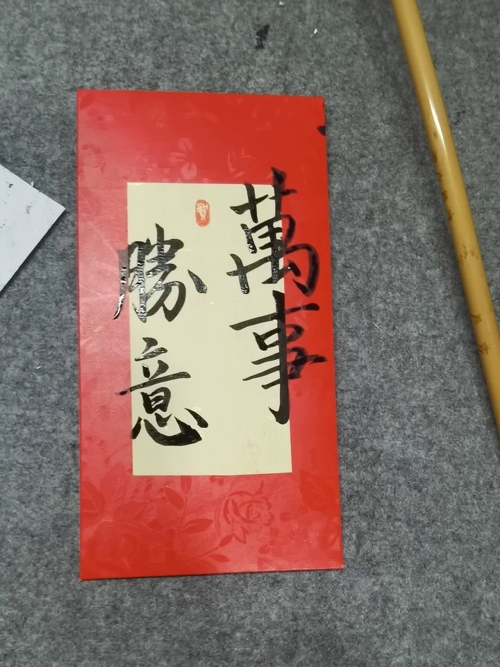 为了让自己的过年红包更加独特,也有人会选择在网上购买书法红包,或是选择空白款自行书写。在红包上写上“别让你妈看见,收藏好”“日富一日,年富一年”等有趣的毛笔字,或是一些 “顺遂无虞,皆得所愿”“欢愉胜意,万事可期”等语句,辅以红泥印章,浓浓的国风气息,显得有新意又满含心意。